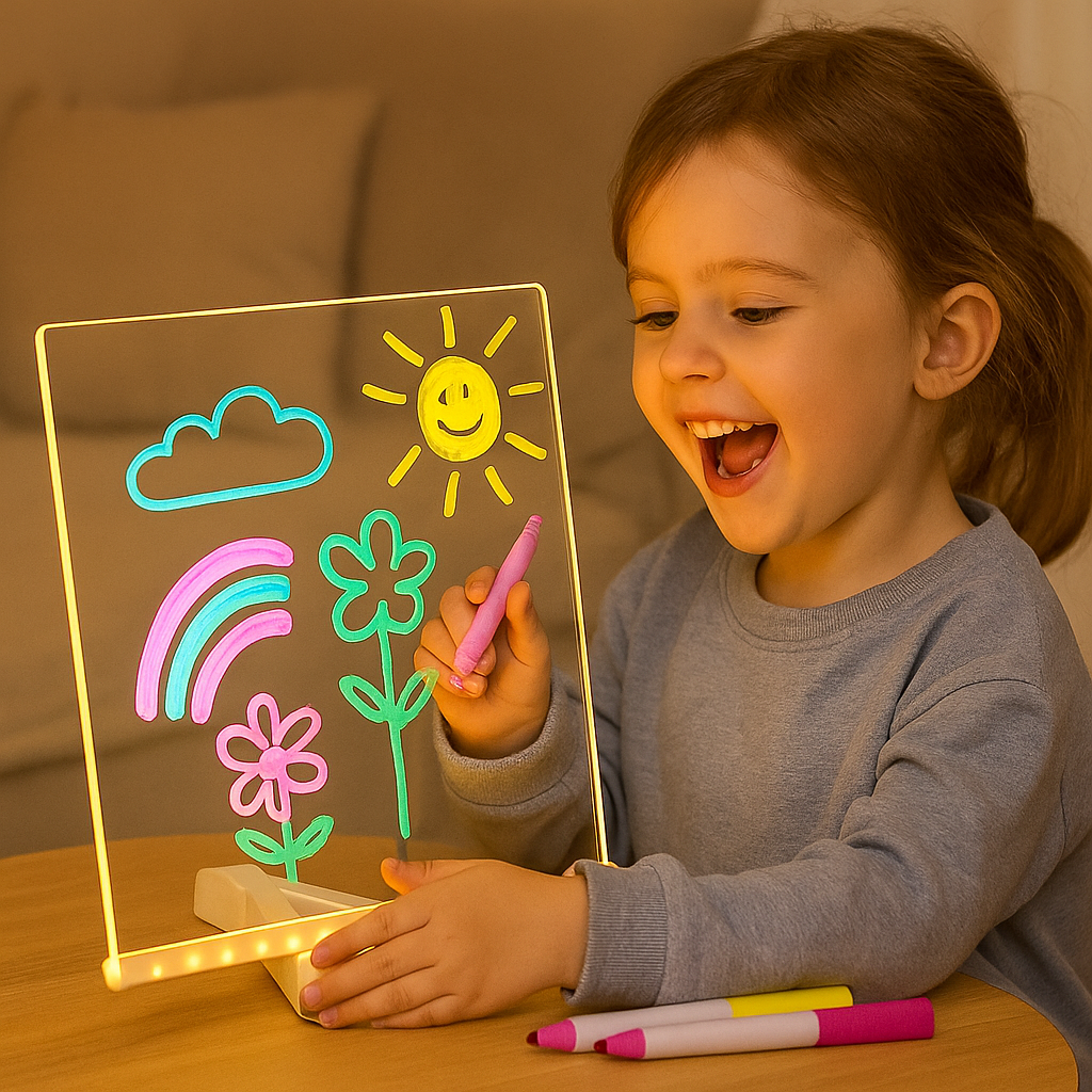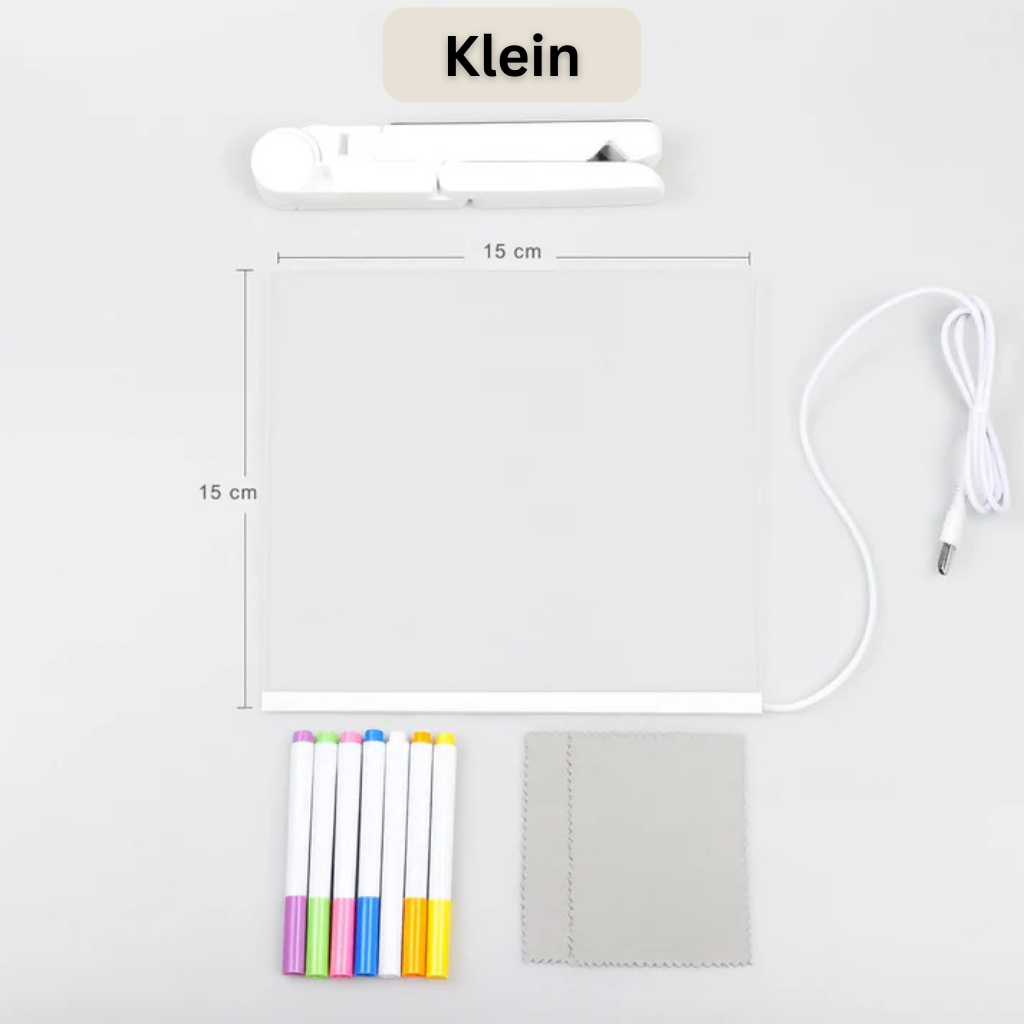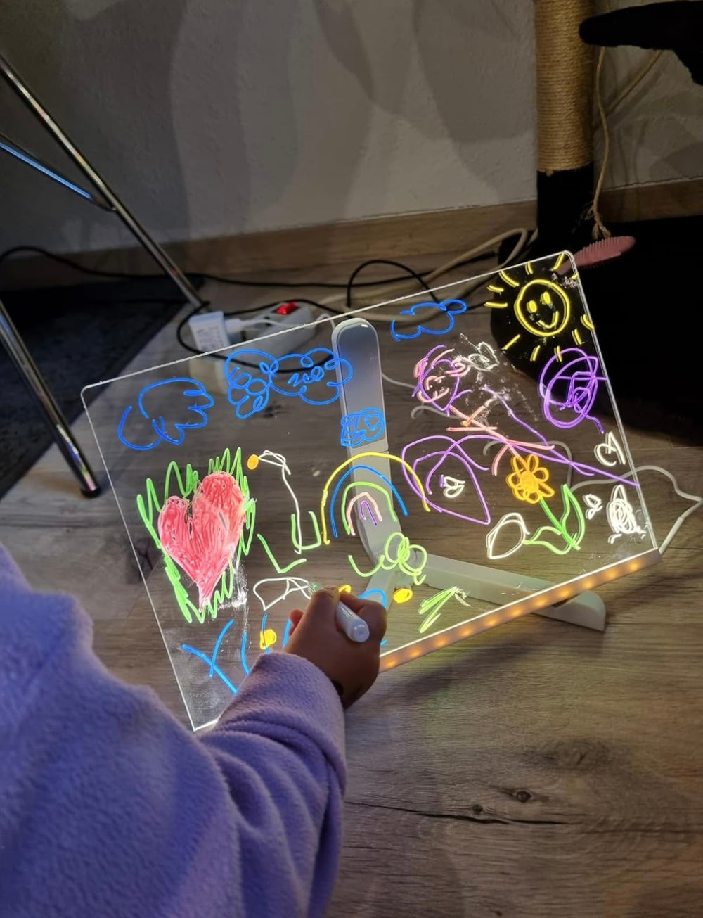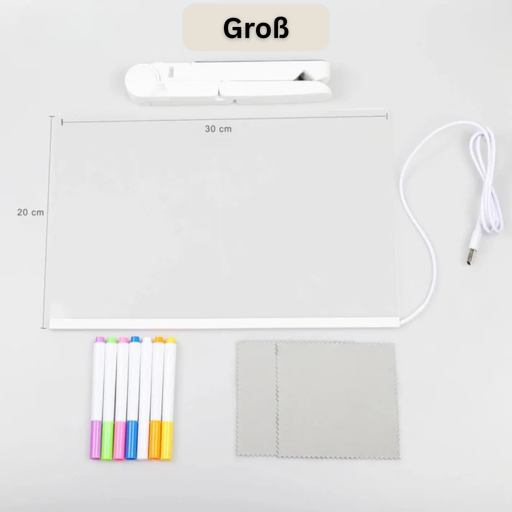 Mit unserer LED-beleuchteten Acryltafel werden Ideen zum Leben erweckt. Kinder und Erwachsene können zeichnen, schreiben und planen – immer wieder neu, ohne Chaos, ohne Müll.